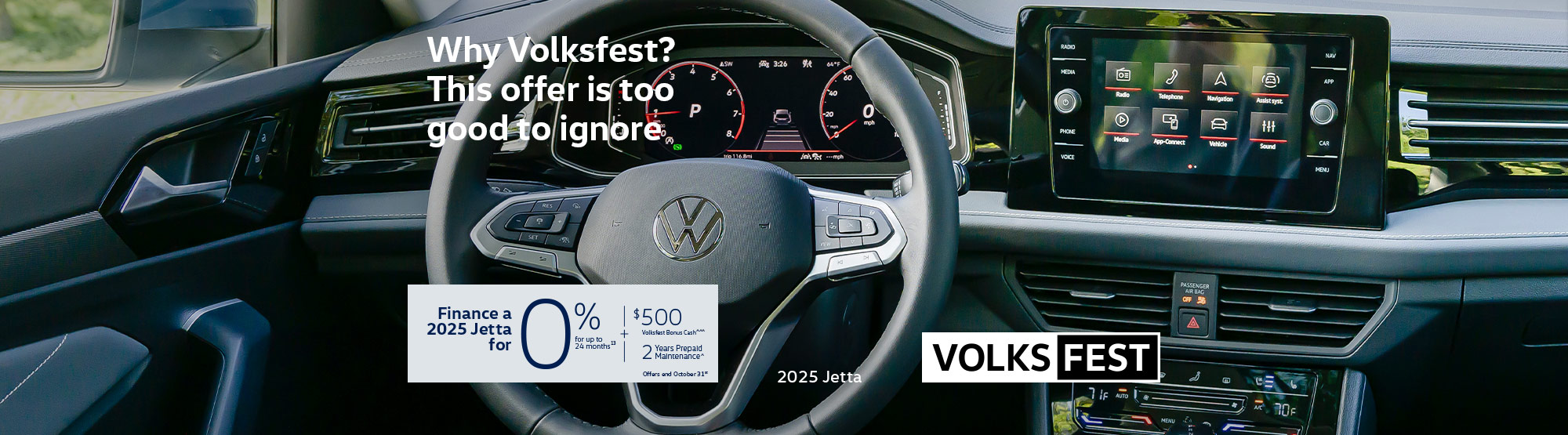 Cash purchase offer is based on the 2026 VOLKSWAGEN JETTA Trendline FWD (BU52RS ac0900560aa4) model, with 1.5L 4 cyl. engine and 8 speed Automatic transmission. Cash purchase selling price is $29,687.95 (plus taxes). Cash purchase selling price ($29,687.95) includes: Freight and PDI ($2,050.00), Admin fee ($499.00), Anti-theft (optional) ($399.95), Air conditioning excise tax ($100.00), Wheel locks (optional) ($96.00), PPSA Registration Fee (On Financing) ($48.00) including installation. Plus (GST/QST) & Licensing. Cash purchase selling price ($29,687.95) excludes: Tire Duty ($22.50). Finance offer is based on the 2026 VOLKSWAGEN JETTA Trendline FWD (BU52RS ac0900560aa4) model, with 1.5L 4 cyl. engine and 8 speed Automatic transmission. Finance selling price is $29,639.95 (plus taxes). Finance payments include: Freight and PDI ($2,050.00), Admin fee ($499.00), Anti-theft (optional) ($399.95), Air conditioning excise tax ($100.00), Wheel locks (optional) ($96.00), Publication Fee ($48.00), PPSA Service Fee ($13.22) including installation. Finance payments exclude: Tire Duty ($22.50). Finance offer is based on a 84 months term and 6.69% interest rate. 364 weekly payments of $102.21 ($117.52 taxes included) with $0.00 cash down and $0.00 net trade in. Cash down payments are due upon vehicle delivery. Trade-in tax credits require proof of ownership. Finance total obligation is $42,777.28 (taxes included). Finance total cost of credit is $8,637.52. Annual Percentage Rate (APR) is 6.7%. Limited time purchase financing offer on approved credit. Some customers will not qualify. Rates and requirements may vary depending on credit worthiness. Payments and conditions may vary for a commercial use. All applicable taxes are calculated on the total amount prior to deduction of the down payment. Lease offer is based on the 2026 VOLKSWAGEN JETTA Trendline FWD (BU52RS ac0900560aa4) model, with 1.5L 4 cyl. engine and 8 speed Automatic transmission. Lease selling price is $29,639.95 (plus taxes). Lease payments include: Freight and PDI ($2,050.00), Admin fee ($499.00), Anti-theft (optional) ($399.95), Air conditioning excise tax ($100.00), Wheel locks (optional) ($96.00) including installation. Lease payments exclude: Publication Fee ($48.00), Tire Duty ($22.50), PPSA Service Fee ($11.50). Lease offer is based on a 60 months term and 6.99% interest rate. 260 weekly payments of $95.83 ($110.18 taxes included) with $0.00 cash down and $0.00 net trade in. $0.00 down payment and tax on down payment, $0.00 net trade-in and $110.18 first payment are due at lease inception. Total amount due at lease inception is $647.27 ($0.00 down payment, Security deposit ($450.00), First payment ($110.18), Publication Fee ($48.00), Tire Duty ($22.50), PPSA Service Fee ($11.50) and (GST/QST) $5.09). Trade-in tax credits require proof of ownership. Lease offer is based on a 16000 kilometer allowance per year. $0.15 fee per excess kilometer will apply. Estimated vehicle residual value is $12,187.70. An option to purchase at lease end (Buy Back Value) of $12,687.70 may be available. A security deposit might be required. Limited time leasing offer on approved credit. Some customers will not qualify. Rates and requirements may vary depending on credit worthiness. Payments and conditions may vary for a commercial use. Taxes on initial cash down and after tax rebates (including government rebate) are excluded and must be paid upon delivery. Lease total obligation is $29,183.89 (taxes included). Lease total cost of credit is $7,963.55. Annual Percentage Rate (APR) is 7.54%. The illustrated vehicle is based on the 2026 VOLKSWAGEN JETTA Highline FWD (BU54RS bf3351c8f450) model, with 1.5L 4 cyl. engine and 8 speed Automatic transmission. The illustrated vehicle's cash purchase selling price is $35,787.95. Levy and other environmental or related levies, other taxes (including, where applicable, GST and PST or HST), additional options, license, insurance and registration are extra. While every reasonable effort is made to ensure the accuracy of this information, we are not responsible for any errors or omissions contained on these pages. Please verify all information and pricing with a sales representative or ask online. The dealership reserves the right to make changes at any time, without notice, to the prices, rates, models, materials, equipment, specifications, and availability, or to discontinue models or equipment. Vehicle trade-ins are subject to dealer's approval. Trade-in tax credits require proof of ownership.