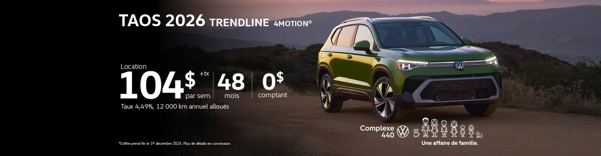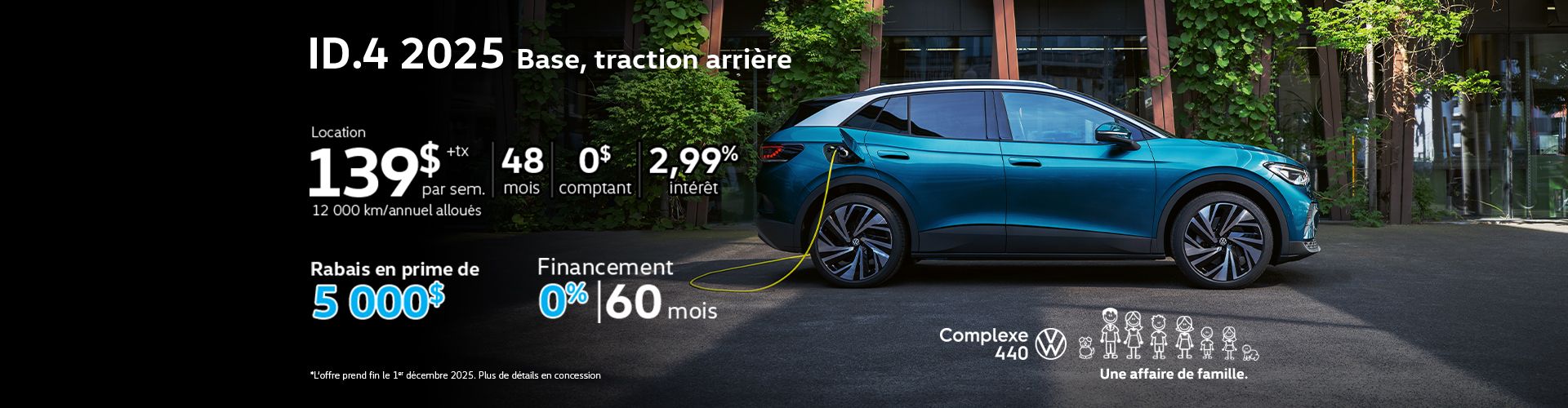 Complexe VW 440 et Volkswagen Canada vous offrent des solutions de financement pour l’achat ou la location d’un véhicule Volkswagen d’occasion ou neuf. Visitez notre concession Volkswagen, Complexe Volkswagen 440, à Laval et profitez des offres et promotions Volkswagen en cours sur les VUS (VW Atlas, VW Atlas Cross Sport, VW Tiguan), les voitures (VW Golf, Jetta, Golf GTI, Jetta GLI, Passat) et les véhicules électriques, comme la iD.4. Visitez notre salle d’exposition et entretenez-vous avec l’un de nos conseillers experts Volkswagen.